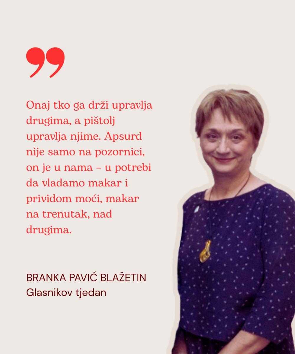 Teatar apsurda ili ogledalo stvarnosti. Na sceni se otvara soba. Prazna, ogoljena, s nekoliko stolica, jednom lutkom, harmonikašem. Pet likova i pištolj. Mogla bi to biti svaka soba između prošlosti i budućnosti, između zabluda i sjećanja. U toj prostoriji, u kojoj se čuje odjek smijeha i pucnja, sabrani su jezici, navike i proturječja. Na Balkanu. U Tužnoslaviji. U Mađarskoj. Tužni južni Slaveni.