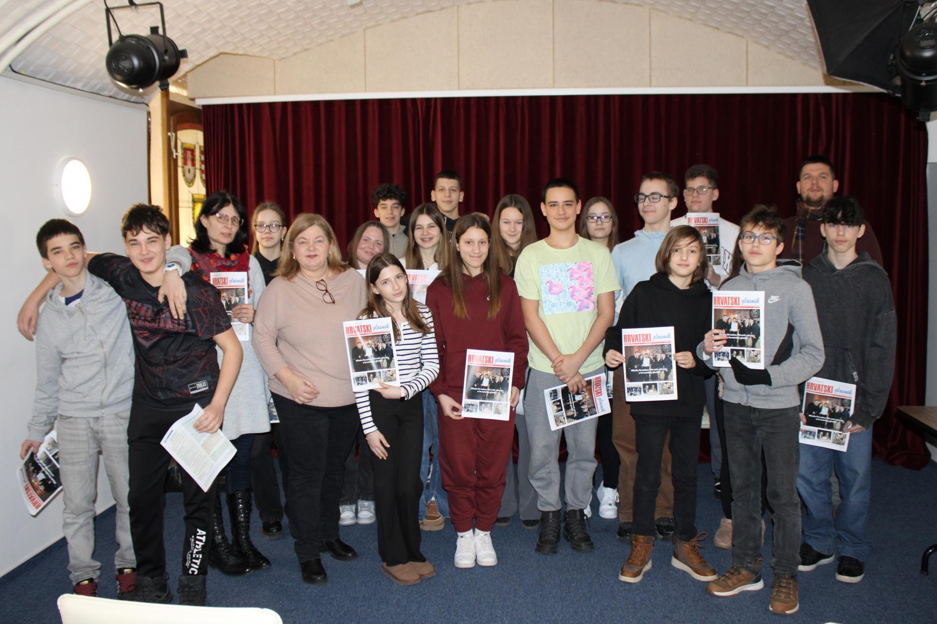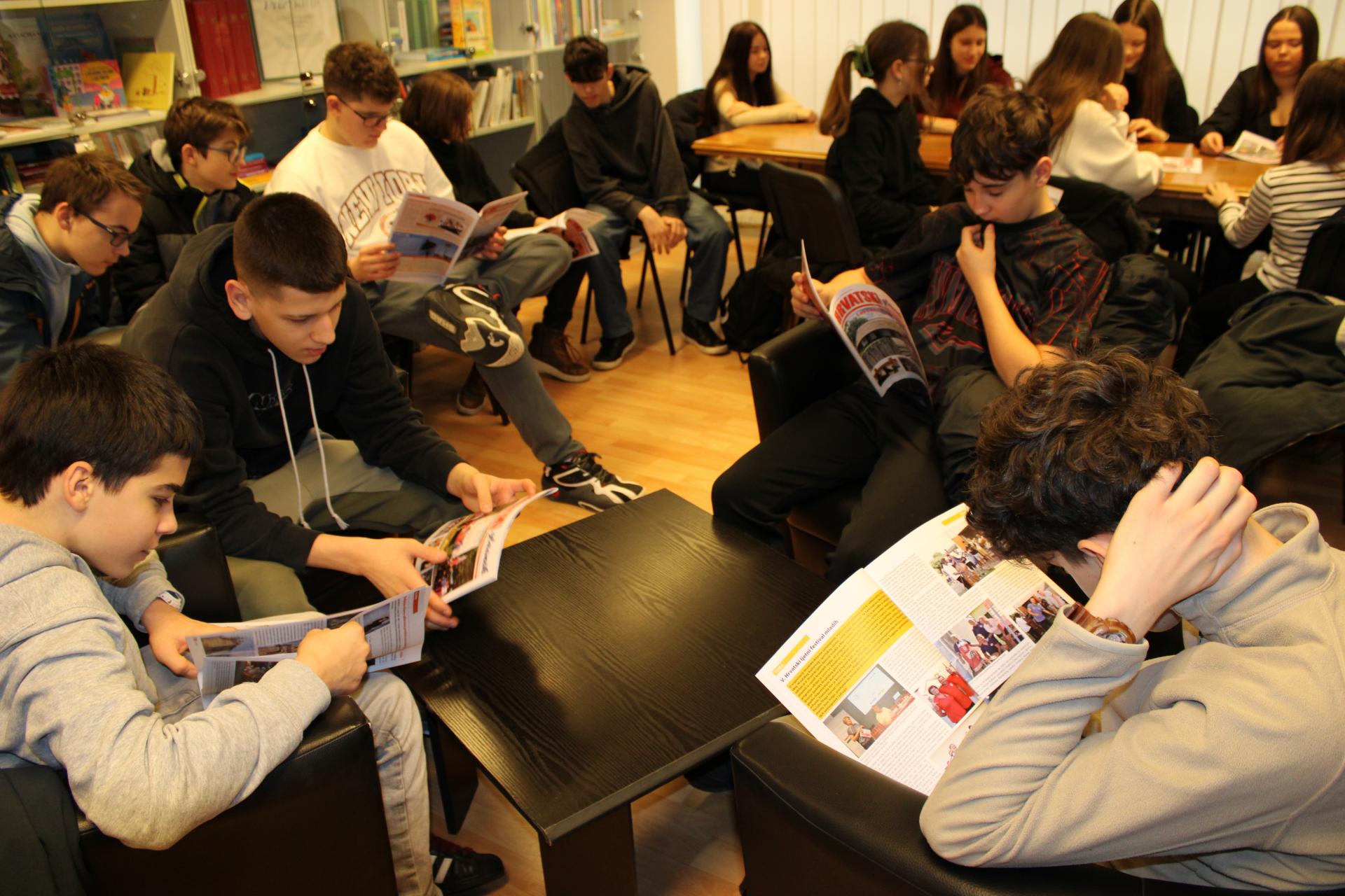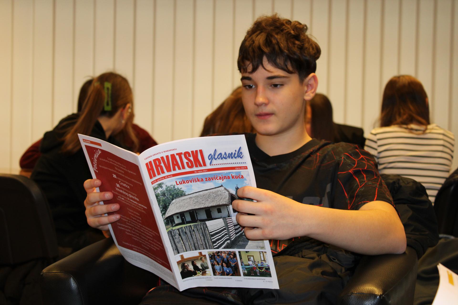 hrvatska događanja ondje odvijaju. Na takva, a i na mnoga druga pitanja odgovarala im je ravnateljica Croatice Timea Šakan-Škrlin. U razgovoru s njima također je pokušala doznati kakvi su interesi mladih, koliko i što najradije čitaju, na kakve bi programe rado došli u budućnosti. Tijekom posjeta učenici su otkrili kako se snimaju i uređuju intervjui u radijskom studiju. Oni su sami vodili intervjue, postavljali pitanja jedni drugima, uređivali glasovne zapise te čak snimili i glazbene kompozicije koje su odsvirali na svojim instrumentima. Ravnateljica Šakan-Škrlin također im je u tiskari pokazala kako se tiska Hrvatski glasnik, koji su poslije svi dobili na poklon.