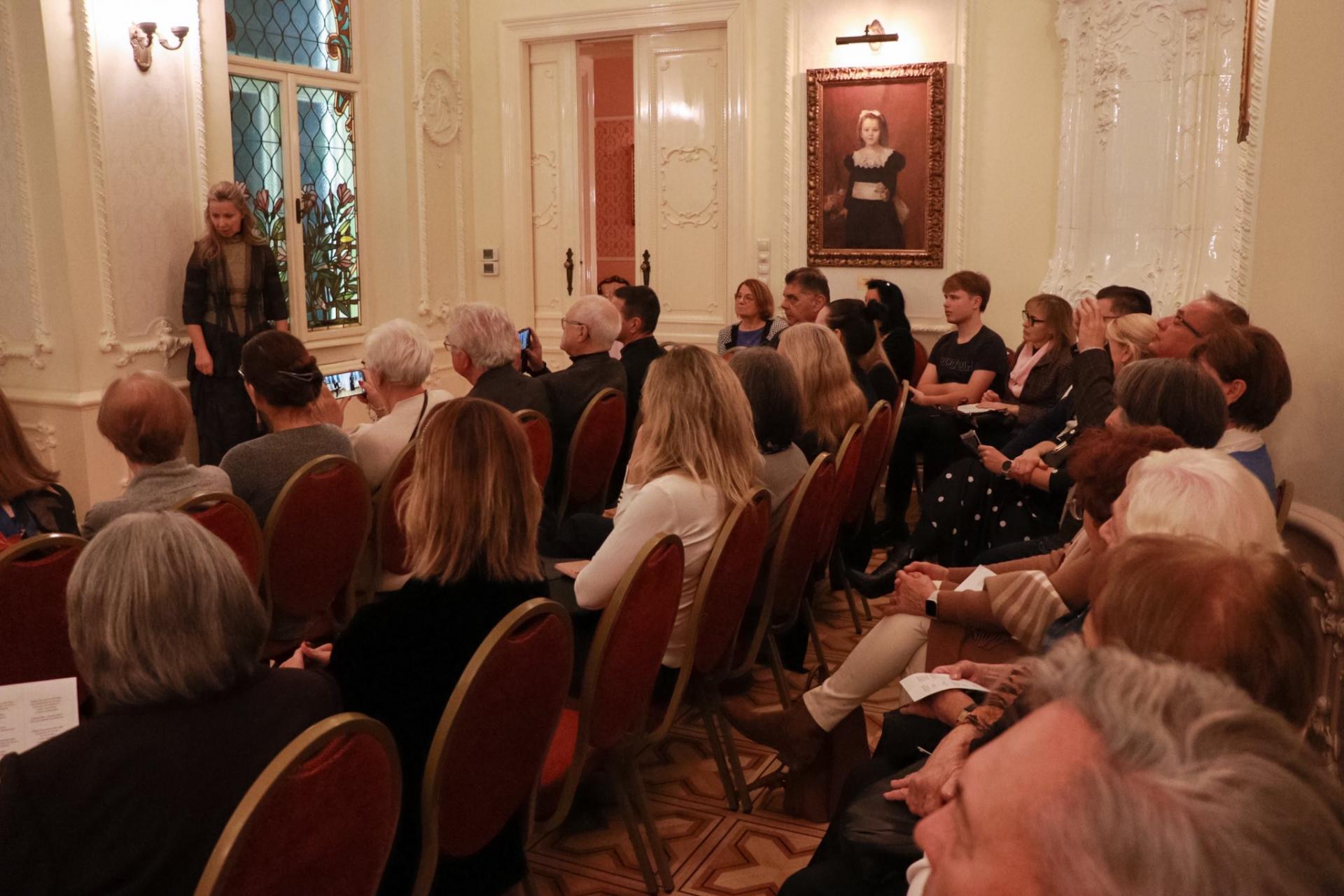 Mimi i Ružica zaokružile su i literarni blok izvodeći posljednju pjesmu. Salonske večeri nekad su bile posebna okupljanja umjetnika, ljubitelja umjetnosti i intelektualaca. Na njima su se svirale nove skladbe, čitale pjesme, razgovaralo se o književnosti, slikarstvu i životu. Bili su to trenutci u kojima su se umjetnici međusobno nadahnjivali, a publika je doživljavala glazbu iz neposredne blizine. Da bi se istinski oživio duh 19. stoljeća i salonskih večeri, Schumann salon odvio se na impozantnoj lokaciji – u glazbenom salonu Hubay (Jenő Hubay), gdje su se nekoć redovito održavali glazbeni, književni i drugi umjetnički susreti koji su tijekom više od četiri desetljeća bili istaknuti događaji mađarskog kulturnog života. Kuću na obali Dunava i unutrašnji salon izgradio jesam Jenő Hubay (1858. – 1937.), izvanredni violinist, skladatelj i pedagog, od prihoda sa
