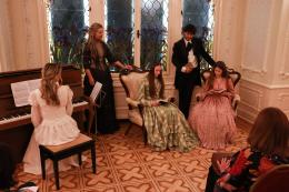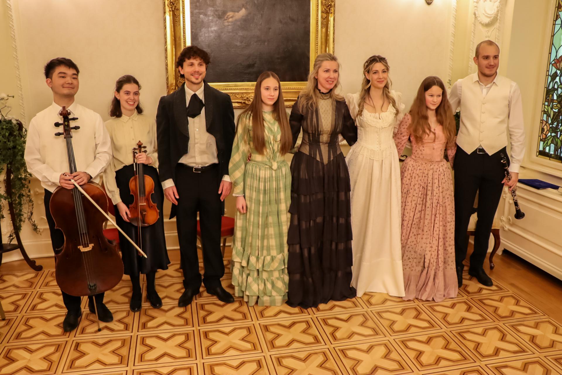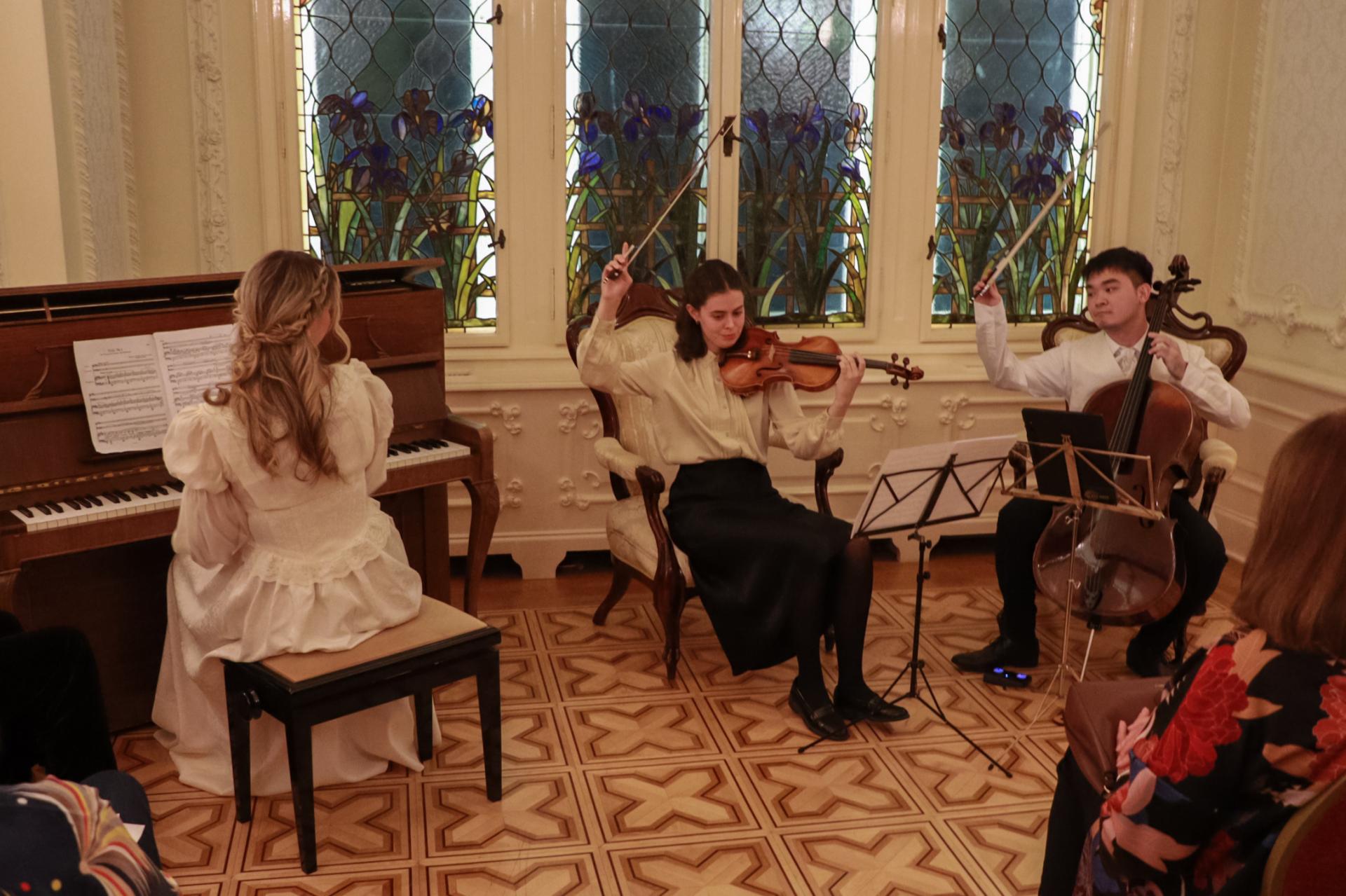 Goste su dočekivale moderatorice Ružica Rácz Szabó i Mimi Nina Vám upućujući ih u salon i dijeleći brošure o predstojećem programu. Prisutni su mogli uživati u glazbenom repertoaru koji je uključivao sljedeće: Johannes Brahms (1833. – 1897.) Capriccio in B minor, Op. 76 No. 2, Johannes Brahms (1833. – 1897.) Intermezzo in A major, Op. 118 No. 2, Clara Schumann (1819. – 1896.) Three Romances, Op. 21: No. 1, Romance in A minor, Robert Schumann (1810. – 1856.), Fantasiestücke, Op. 73: No. 1, Zart und mit Ausdruck, Robert Schumann (1810. – 1856.) Romances, Op. 94: No. 1, Nicht schnell, Johannes Brahms (1833. – 1897.) Piano Trio No. 1 in B major, Op. 8: I. Allegro con brio.