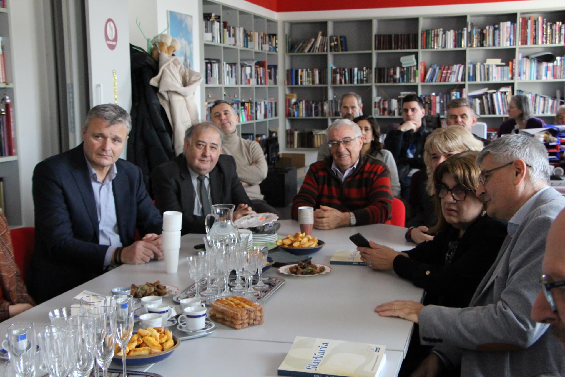 Na skup su se odazvali i kolege prof. Barića iz Osijeka, glasnogovornik Hrvata u Mađarskom parlamentu Jozo Solga, predsjednik HDS-a Ivan Gugan, voditelji institucija u sustavu Hrvatske državne samouprave te profesori s Instituta za slavistiku i Katedre za hrvatski jezik i književnost te Katedre za ruski jezik i književnost.