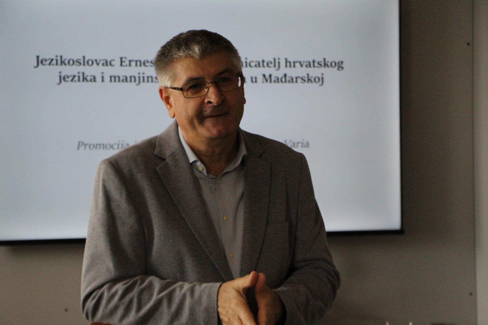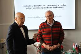 Iskrena i nadasve prijateljska atmosfera odlikovala je druženje u znaku 80. rođendana „manjinskog kroatista”, jezikoslovca, dugogodišnjeg voditelja Katedre za hrvatski jezik i književnost Filozofskog fakulteta Sveučilišta u Pečuhu te prvog ravnatelja Znanstvenog zavoda Hrvata u Mađarskoj dr. sc. Ernesta Barića.