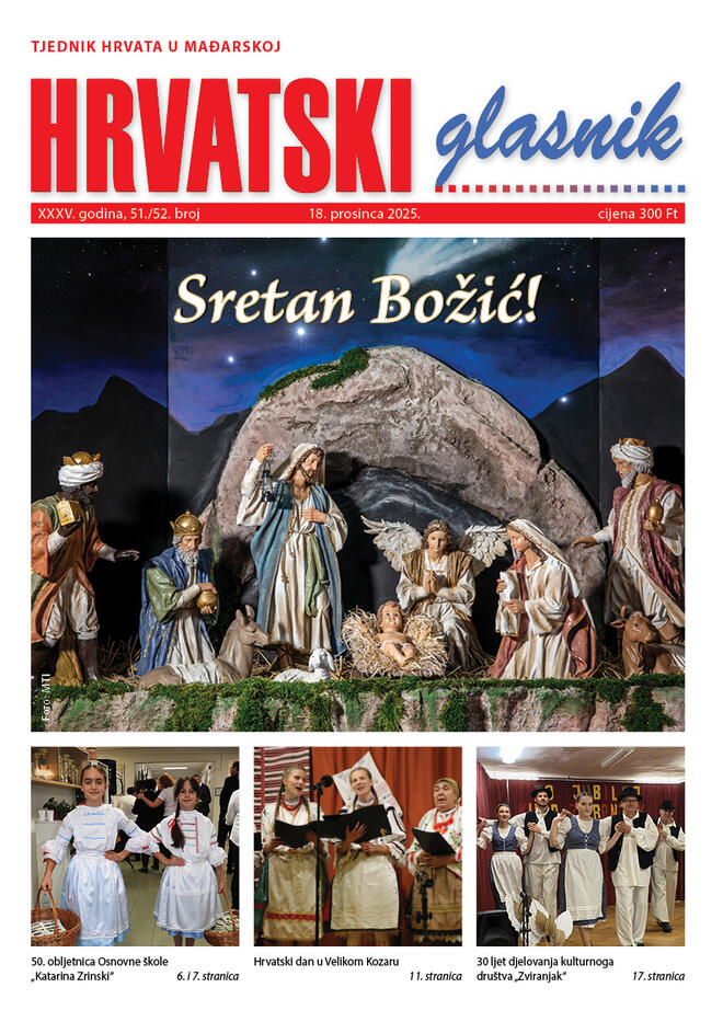 Novi, ovoga puta 51.–52. dvobroj Hrvatskog glasnika, tjednika Hrvata u Mađarskoj, donosi na 24 stranice u boji bogat i raznolik sadržaj iz života hrvatske zajednice, uz prilog – zidni kalendar Hrvatskog glasnika.