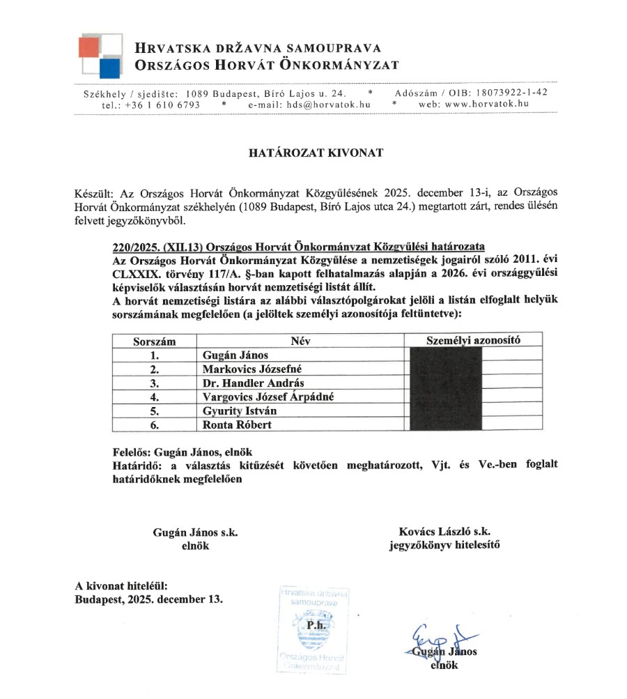 Izbornu listu HDS-a vodi predsjednik HDS-a Ivan Gugan. Sukladno odredbama Pravilnika o organizaciji i radu Hrvatske državne samouprave, 13. prosinca, na dijelu redovne sjednice Skupštine zatvorenom za javnost, Skupština HDS-a postavila je hrvatsku narodnosnu listu za predstojeće parlamentarne izbore 2026. godine. Sjednici je od 31 zastupnika Skupštine HDS-a nazočilo njih 30.