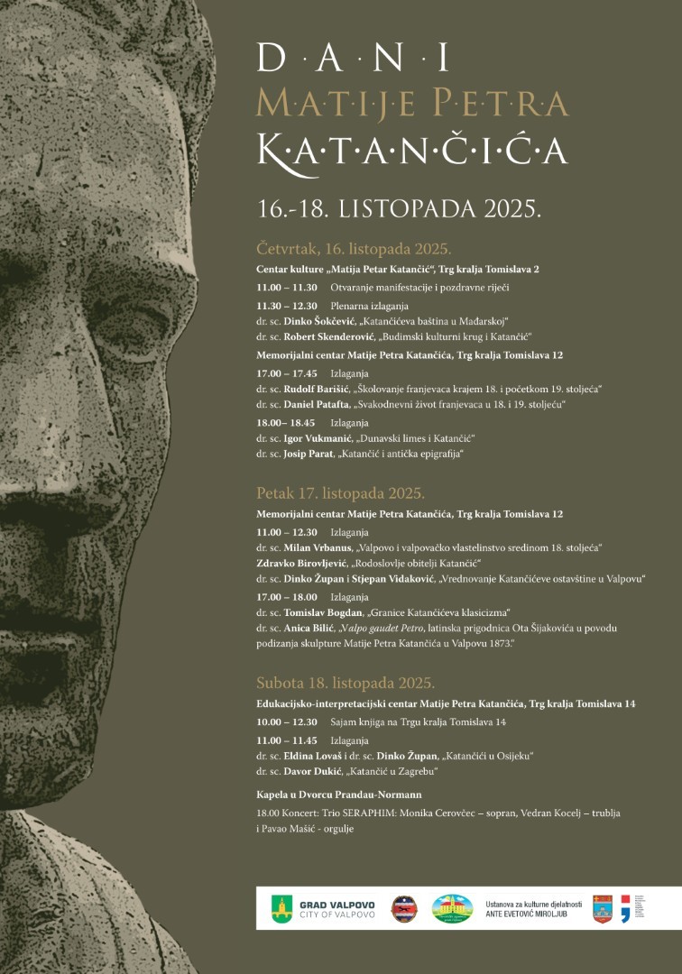 Sedmi Katančićevi dani održavaju se 16. i 17. listopada. Dani „Matija Petar Katančić“ su nakon svečanosti otvaranja započeli s plenarnim izlaganjima dr. sc. Dinka Šokčevića i dr. sc. Roberta Skenderovića. Oni su valpovačku publiku upoznali s Katančićevim djelovanjem u Budimu i Pešti krajem 18. i početkom 19. stoljeća. Šokčevič je održao predavanje „Katančićeva baština u Mađarskoj” a Skenderović „Budimski kulturni krug i Katančić”.
